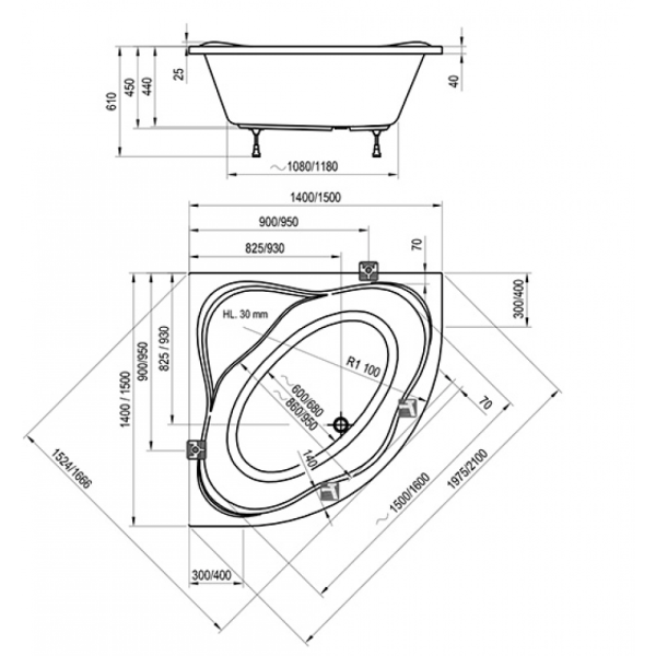 Ванна производителя Ravak серии New Day изготовлена из акрила, который отлично сохраняет тепло, звукопоглощающий, надежно защищен от царапин и легок в уходе, а гладкая поверхность приятно действует на кожу. Форма ванны угловая. Габаритные размеры изделия 1500х1500 мм.