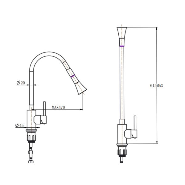 - Удлиненный излив 470 мм для максимального комфорта при мытье посуды