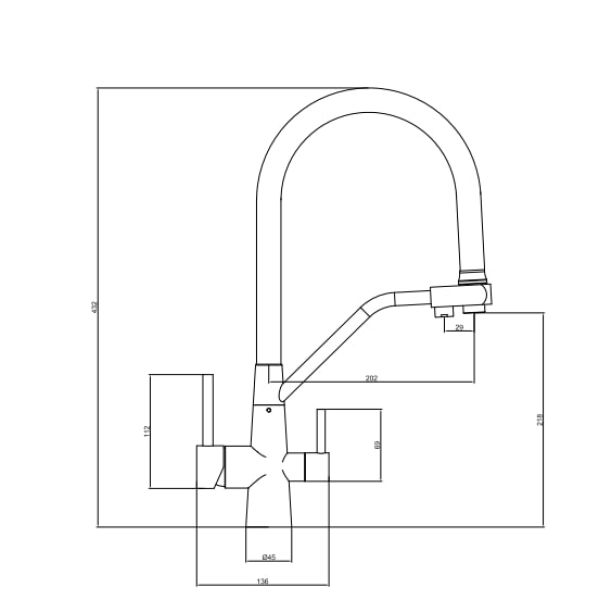 Модель оснащена U-образным изогнутым удобным изливом длиной 207 мм. Изготовлена из нержавеющей стали в элегантном сочетании цветов: сталь и черный. Двухрычажная конструкция позволяет отдельно управлять обычной и фильтрованной водой, что делает этот смеситель идеальным для тех, кто использует системы очистки воды (обратный осмос или другие фильтры).