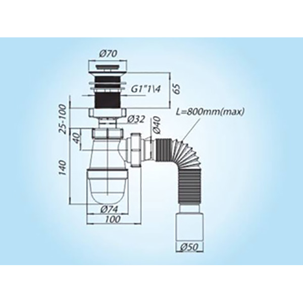 Сифон для умивальника Solo Plast 'У-0220' 1 1/4'х40 з гнучкою трубою 40х50 з хром випуском Л 0001. Конструкція сифона передбачає надійне формування гідрозатвору, що перешкоджає попаданню неприємних запахів і здатна впоратися з великим потоком води