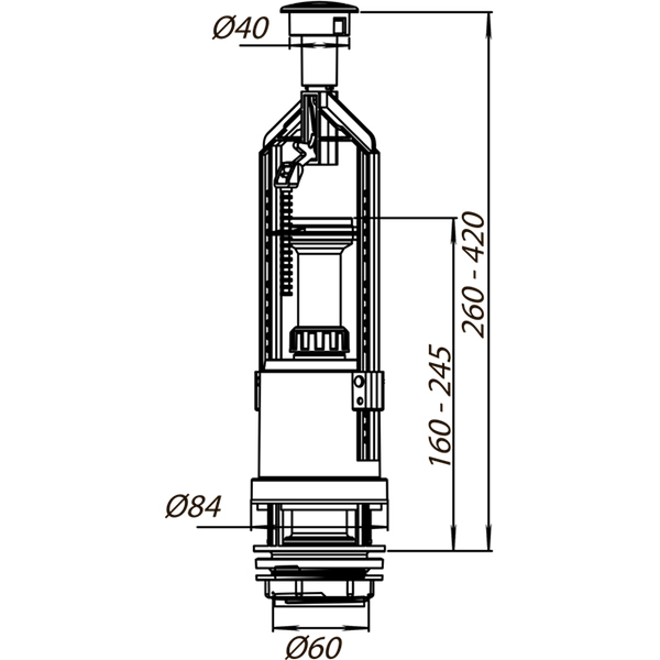 Зливний механізм виробництва SoloPlast АС 04.00 з одинарною кнопкою хром. Економічна витрата води можна налаштувати використовуючи регулювання зливу, яка дозволить виставити необхідні параметри. Завдяки широкому діапазону регулювання по висоті дана модель підходить для змивних бочків різної висоти.