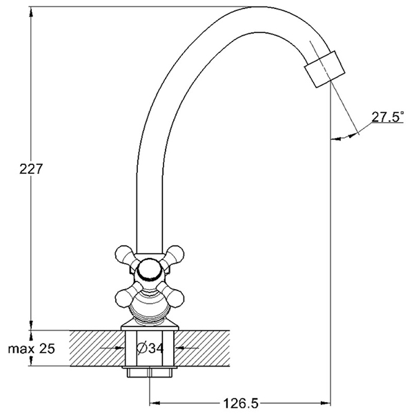 Змішувач G-Lauf JML4-A605 використовується для кухонної мийки, має вигнутий вилив (гусак) 215 мм, двовентильне керування. Виконано в кольорі хром. Виглядає стильно і дуже елегантно.