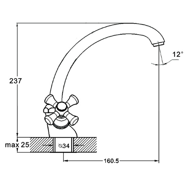 | Форма виливу | вигнутий |