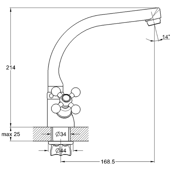 Монтується змішувач на умивальник з допомогою гайки, така короноподібна форма дозволяє з легкістю прикрутити кріплення пальцями. Виконано в класичному кольорі хром, що виглядає дуже сучасно і практично.