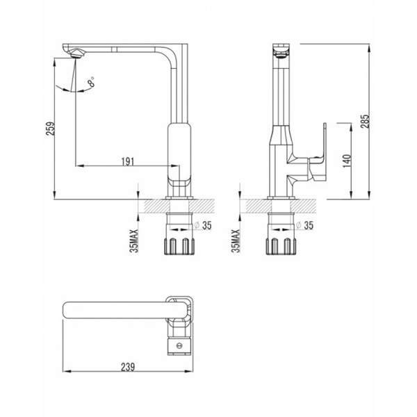 | Довжина виливу | 191,0 мм |