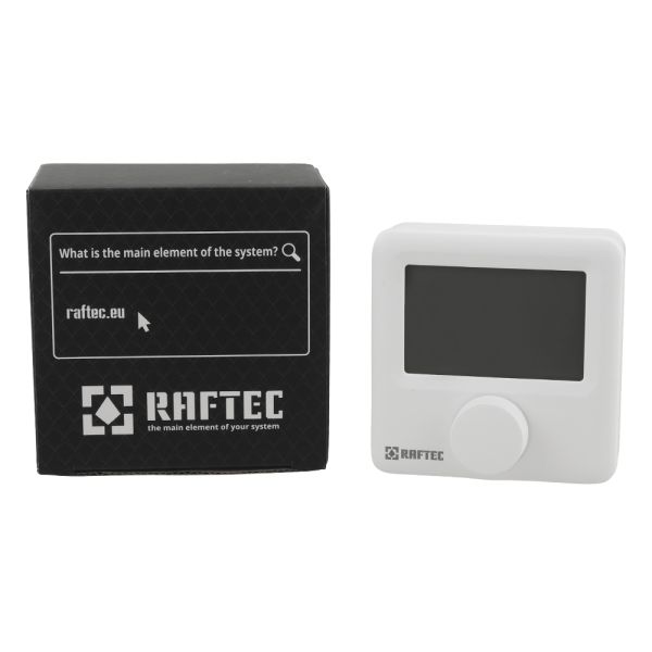 Бездротовий терморегулятор Raftec R06WL, це пристрій, призначений для управління сервоприводами водяної підлоги по температурі повітря в приміщенні. Підключення термостату до занального контролера відбуваєтся по бездротовому (RF) радіочастотному зв'язку. Працює з зональним контролером Raftec R521WL . Живлення термостату відбувается завдяки від двох батарейок ААх1,5В