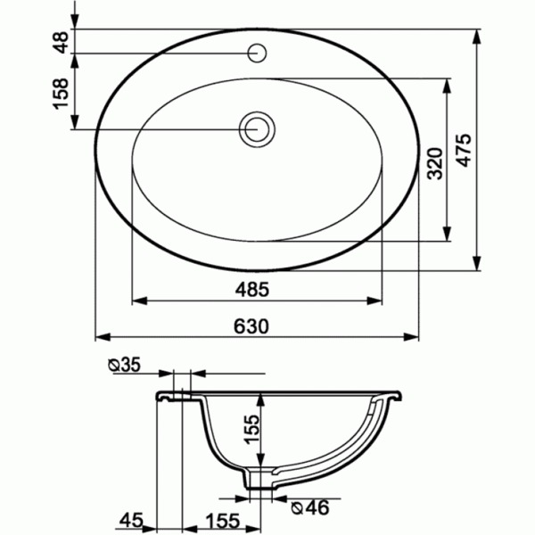 Меблевий умивальник Cersanit GAMMA з переливом і отвором під змішувач, вилитий з сантехнічного фаянсу. Габаритні розміри 630х480 мм. Овальна форма дуже практична і безпечна, у своєму розпорядженні до установки абсолютно будь-якого змішувача. Умивальник гармонійно впишеться в декор Вашої ванної кімнати. Весь санфаянс має сертифікати якості і санітарно-гігієнічні висновки.