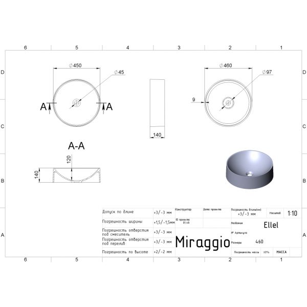 Умивальник Miraggio ELLEL 450 виготовлений з литого каменю білого кольору. Продукція виробляється з екологічно чистих матеріалів. Застосування індивідуальної технології литого каменю дозволяє уникнути присутності будь-яких інтенсивних елементів. Зручна і сучасна модель вдало доповнить Ваш інтер'єр. За умивальником легко доглядати, завдяки гладкій поверхні та дуже просто встановлювати.
