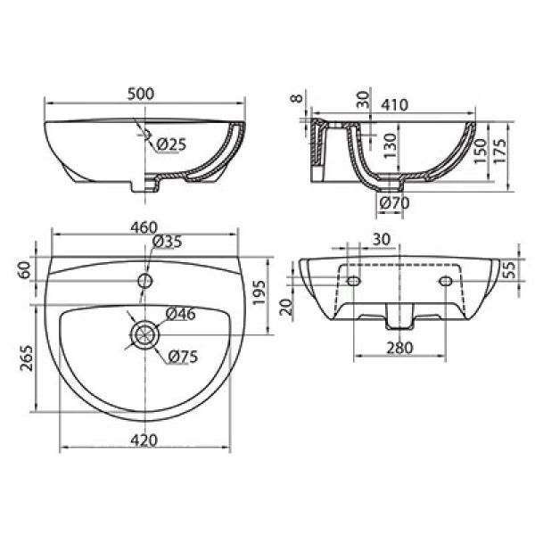 Підвісний вилитий з сантехнічного фарфору умивальник KOLO FREJA 'L7115' з отвором для змішувача з лівого боку і переливом. Габаритні розміри 500х410мм. Елегантний умивальник додасть Вашій ванній кімнаті світла і простору. Модель неодмінно порадує Вас не тільки своєю якістю матеріалу, а також додасть краси і комфорту. Весь санфаянс має сертифікати якості і санітарно-гігієнічні висновки.