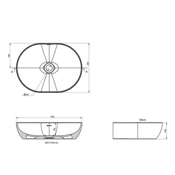 Умивальник VOLLE BLACK AMADEUS 50 13-01-06