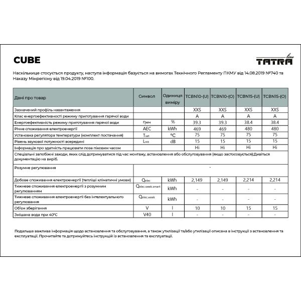 Водонагрівач Tatra-line CUBE TСBN10-(U) 10 л