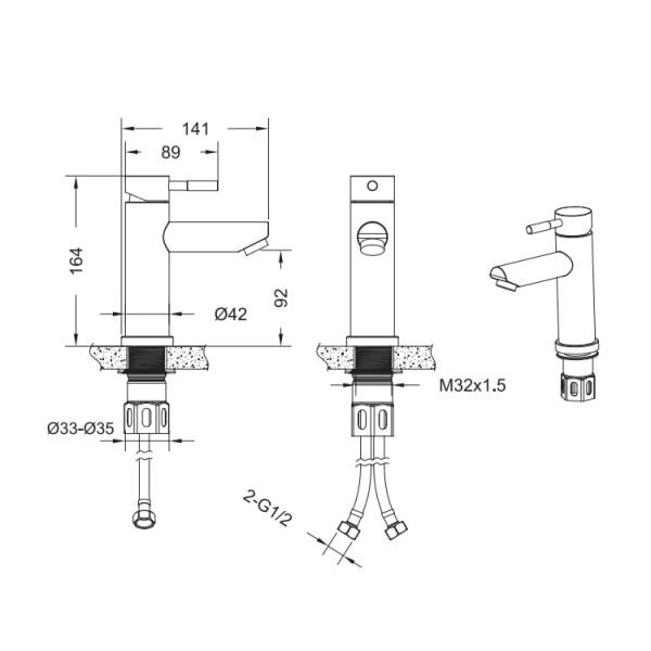 Змішувач для умивальника VENTA VS102MB у чорному матовому кольорі — це ідеальна комбінація стриманої естетики та інженерної довершеності. Заокруглені форми змішувача надають йому м'якості, а витончений важіль, який активується рухом вгору, — підкреслює комфорт керування. Модель виготовлена з харчової нержавіючої сталі, яка не піддається корозії, не вбирає запахів та легко очищується. Завдяки стаціонарному Г-подібному виливу довжиною 14,1 см, змішувач забезпечує зручний потік води без зайвих розбризкувань, а також ідеально підходить для компактних умивальників.